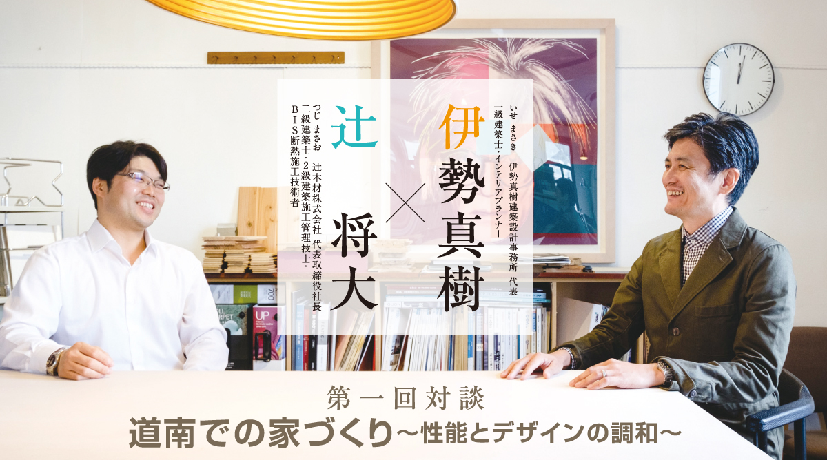 従来のローコスト住宅からユーザーの住みやすさや住宅の機能性を追求した家づくりへの変革を目指す辻木材株式会社 辻社長と北海道の建築に長く携わっている伊勢一級建築士が機能性とデザインの共存について語る。