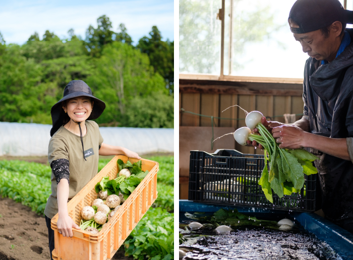 最初に彼から「農業をやりたい」って聞いたときはびっくりして反対もしたのですが、いま、少量多品種で作ってみたい野菜もあるし、人との新しいつながりも広げていきたいし、やりたいことがどんどん出てくるので毎日とても楽しいです。